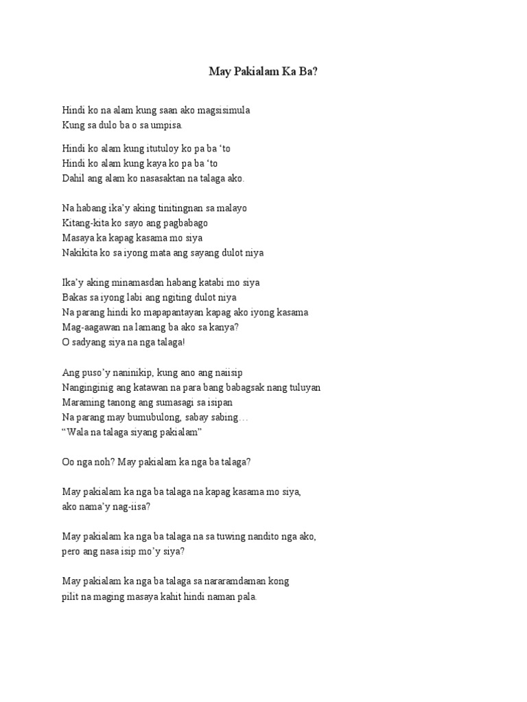You had a bad fall when you went hiking in Savannah with your office ladies. Kung mahal mo ako Maari mo akong alagaan Para balang araw tayo ay magkita Para sa iyong magandang kinabukasan Pangmatagalan. Nawala bigla ang mga bumubulong na naririnig ko kanina.
