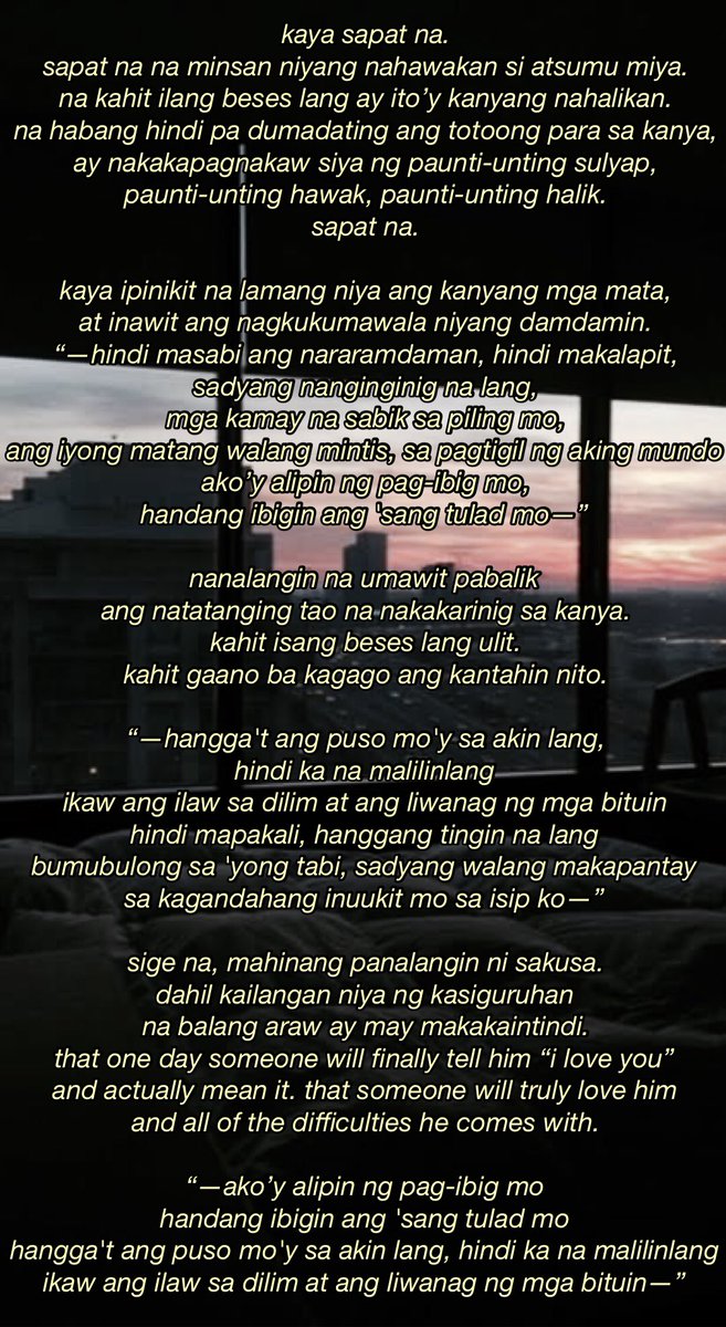 Parang may bumubulong sa akin na wag sumigaw. There were times kasi na parang may bumubulong sa kanya at tinatawag siyang Tonyang. Tsaka don Tama na nga tong feeling na bads ka paren ngayon Ako ay di naman nabigla nung nangyare yon.